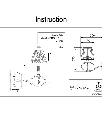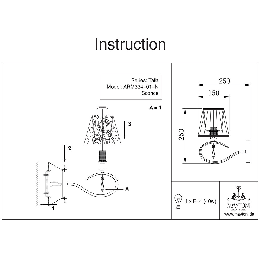 Светильник настенный Maytoni Talia MOD334-WL-01-N 40Вт E14 - купить в интернет-магазине Орегон с доставкой в регионы Крыма.