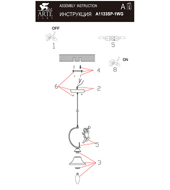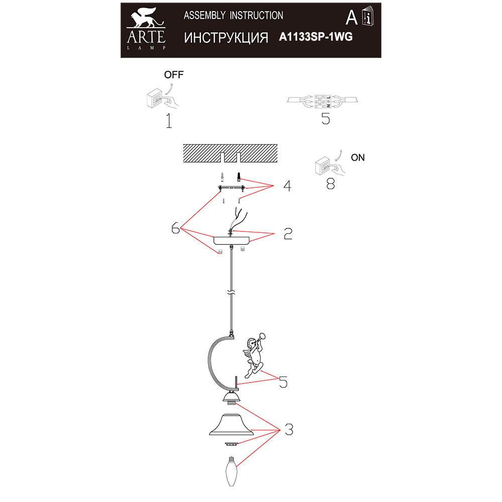 Светильник подвесной Arte Lamp AMUR A1133SP-1WG 60Вт E14 - купить в интернет-магазине Орегон с доставкой в регионы Крыма.