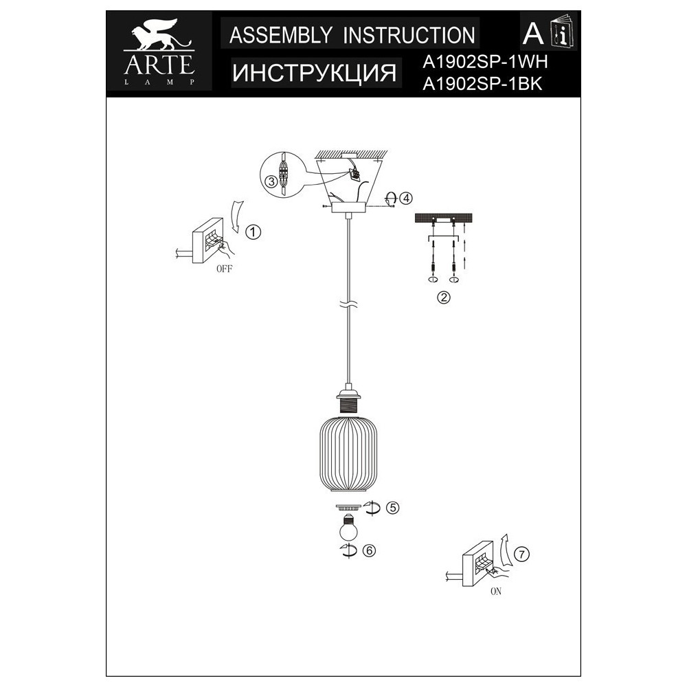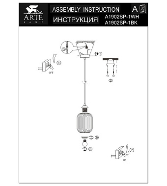 Светильник подвесной Arte Lamp ARWEN A1902SP-1WH 60Вт E27 - купить в интернет-магазине Орегон с доставкой в регионы Крыма.