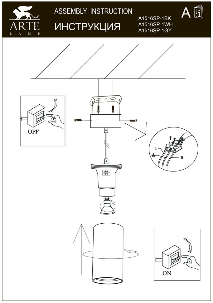 Светильник подвесной Arte Lamp CANOPUS A1516SP-1WH 35Вт GU10 - купить в интернет-магазине Орегон с доставкой в регионы Крыма.