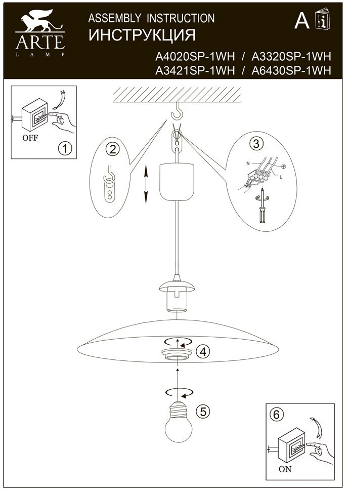 Светильник подвесной Arte Lamp CUCINA A6430SP-1WH 60Вт E27 - купить в интернет-магазине Орегон с доставкой в регионы Крыма.