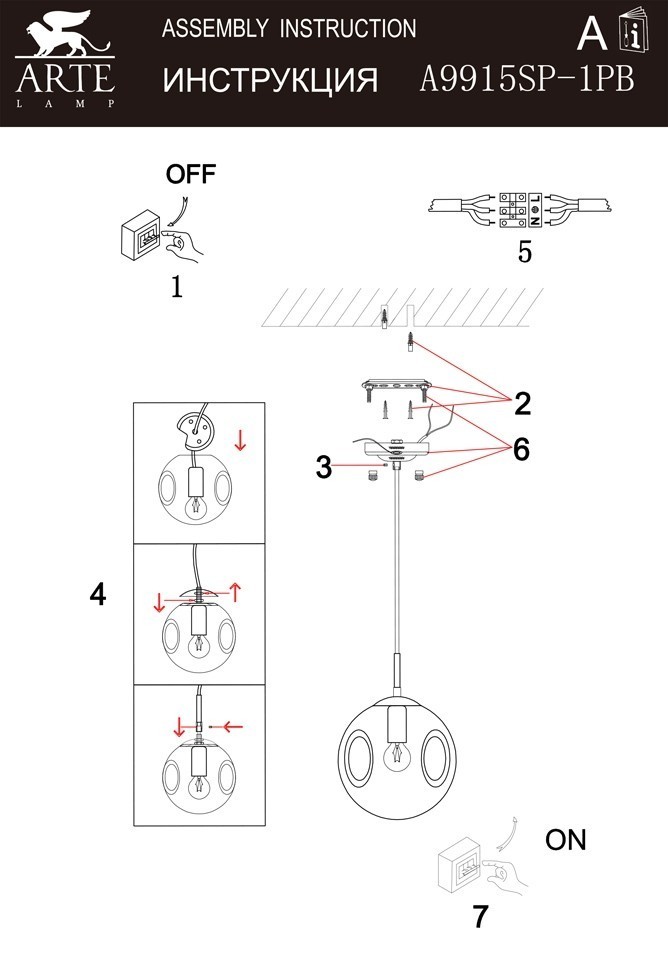 Светильник подвесной Arte Lamp TUREIS A9915SP-1PB 60Вт E14 - купить в интернет-магазине Орегон с доставкой в регионы Крыма.