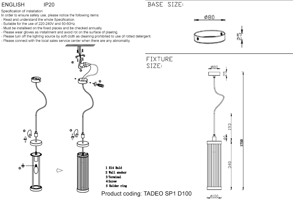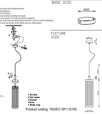 Подвесной светильник CRYSTAL LUX TADEO - прекрасно подойдёт чтобы подчеркунть детали интерьера, зонировать пространство и создать уютную атмосферу. В светильник устанавливаются лампочки E14. Мощность 40 Вт обеспечит равномерное и комфортное освещение. Преимуществом конструкции является лёгкость расположения в пространстве - светильник словно парит в воздухе, благодаря чему, является универсальным дизайнерским элементом. Страна производителя: Испания. Вы можете купить Светильник подвесной CRYSTAL LUX TADEO TADEO SP1 D100 CHROME/TRANSPARENTE 40Вт E14 в интернет-магазине "ОРЕГОН" с бесплатной доставкой по всему Крыму или забрать товар самостоятельно в любом из наших магазинов в Ялте, Севастополе и Симферополе.
