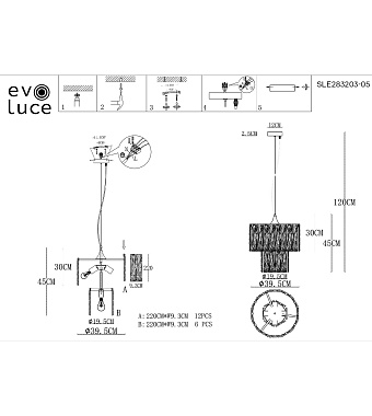 Светильник подвесной Evoluce RIDA SLE283203-05 200Вт E27