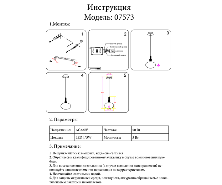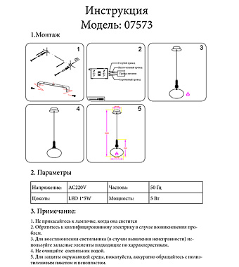 Светильник подвесной KINK Light Ларки 7573,21 5Вт LED - купить в интернет-магазине Орегон с доставкой в регионы Крыма.