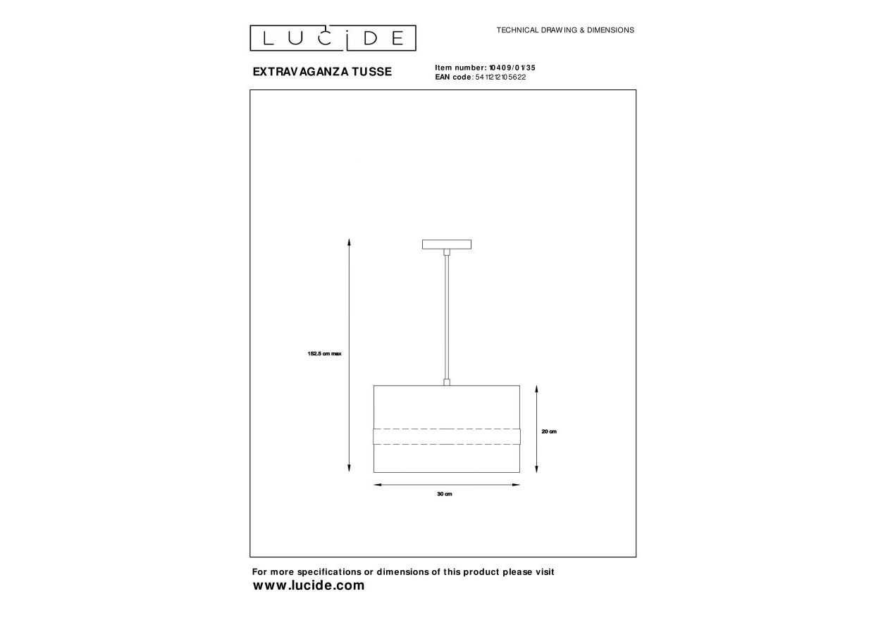 Светильник подвесной Lucide EXTRAVAGANZA TUSSE 10409/01/35 40Вт E27 - купить в интернет-магазине Орегон с доставкой в регионы Крыма.