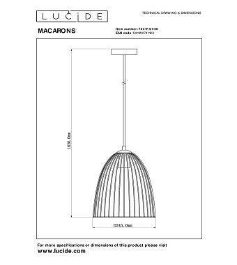 Светильник подвесной Lucide MACARONS 74417/01/30 40Вт E27