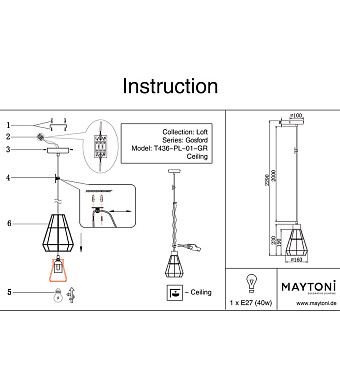 Светильник подвесной Maytoni Gosford T436-PL-01-GR 60Вт E27