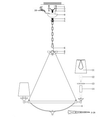 Светильник подвесной Maytoni Pantheon H021PL-06CH 40Вт E14