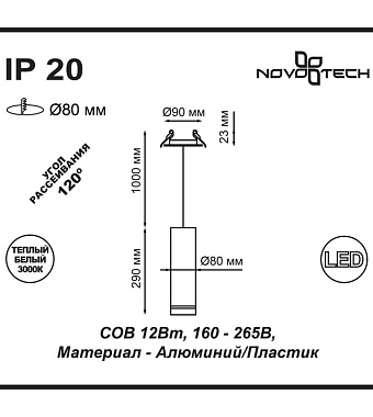 Светильник подвесной Novotech ARUM 357690 12Вт LED - купить в интернет-магазине Орегон с доставкой в регионы Крыма.