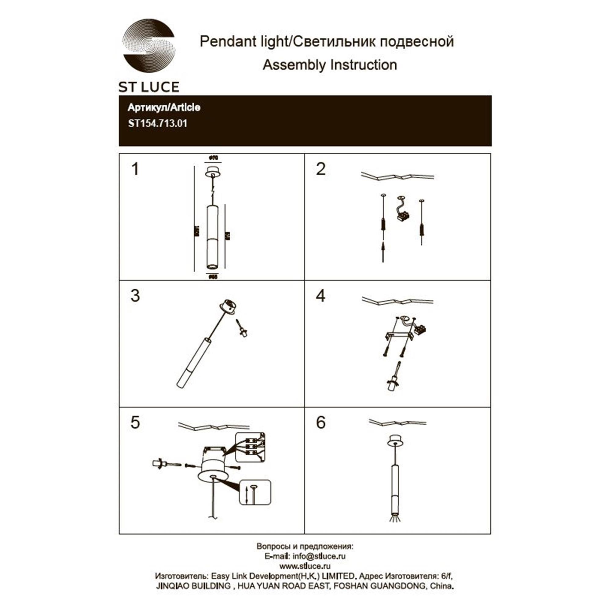 Светильник подвесной ST Luce ST154.713.01 5Вт GU10 - купить в интернет-магазине Орегон с доставкой в регионы Крыма.