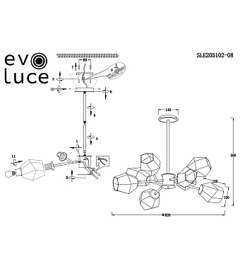 Светильник потолочный Evoluce TERRAMO SLE205102-08 480Вт E27 - купить в интернет-магазине Орегон с доставкой в регионы Крыма.