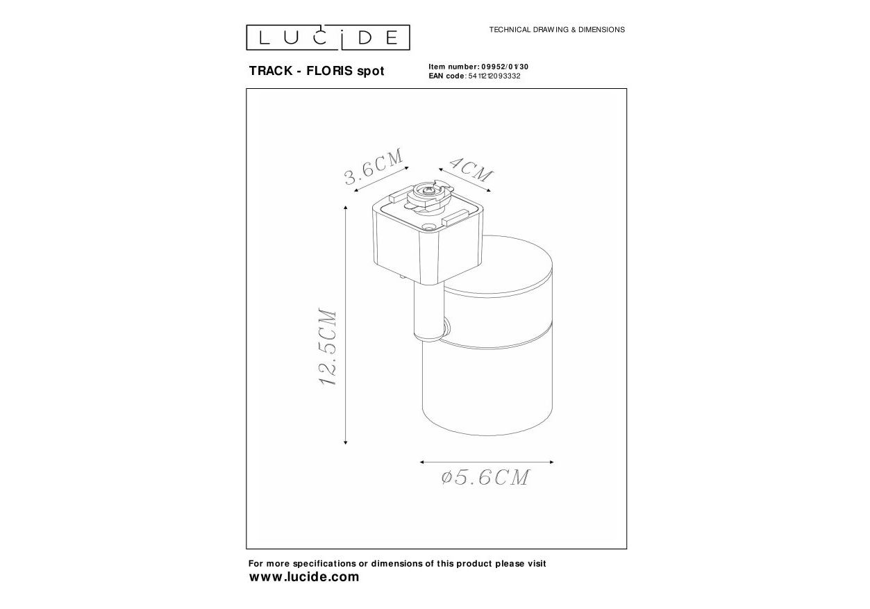 Светильник потолочный Lucide TRACK - FLORIS spot 09952/01/30 50Вт GU10 - купить в интернет-магазине Орегон с доставкой в регионы Крыма.