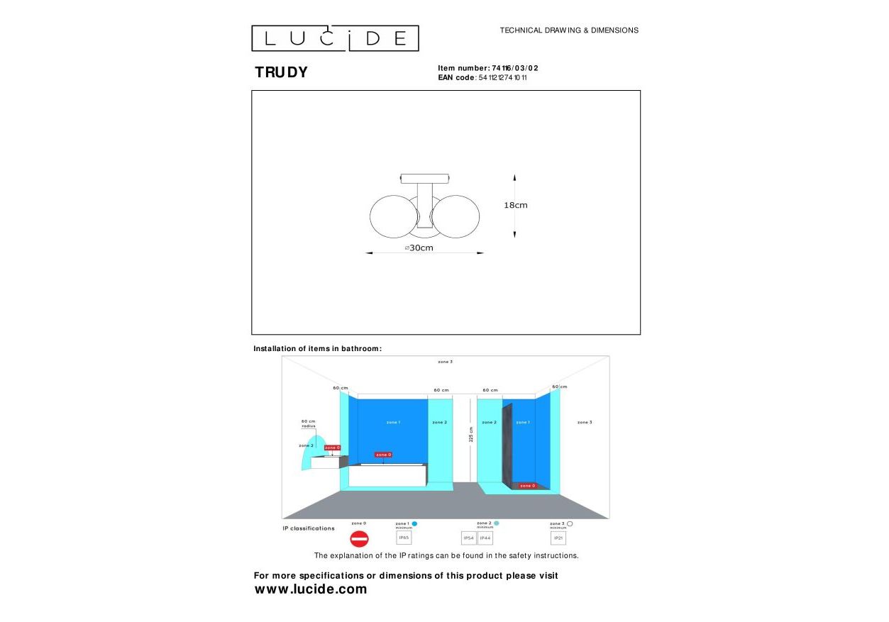 Светильник потолочный Lucide TRUDY 74116/03/02 40Вт G9