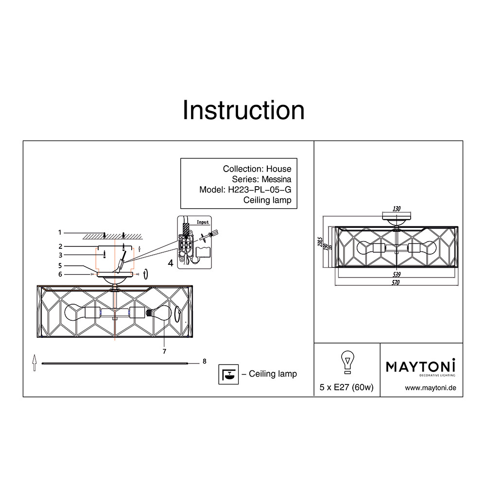Светильник потолочный Maytoni Messina H223-PL-05-G 60Вт E27