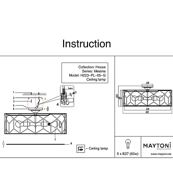 Светильник потолочный Maytoni Messina H223-PL-05-G 60Вт E27 - купить в интернет-магазине Орегон с доставкой в регионы Крыма.