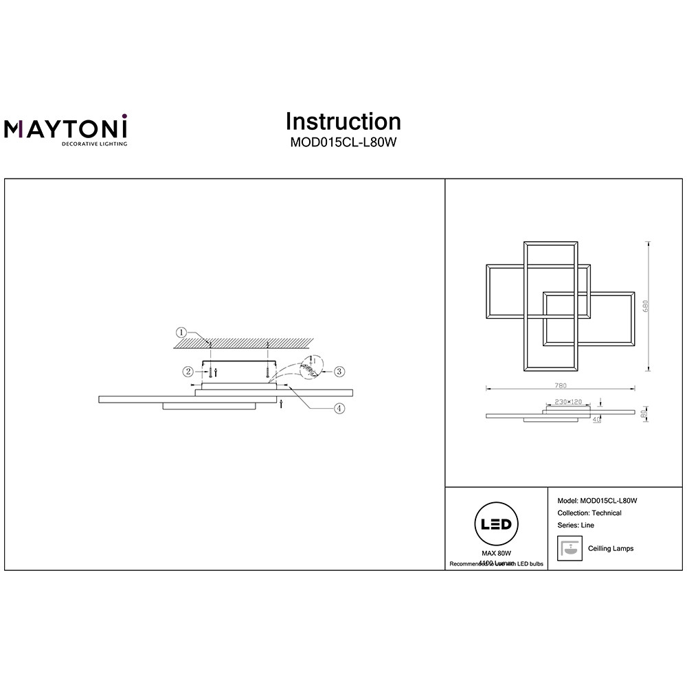 Светильник потолочный Maytoni Rida MOD015CL-L80W 81,7Вт LED