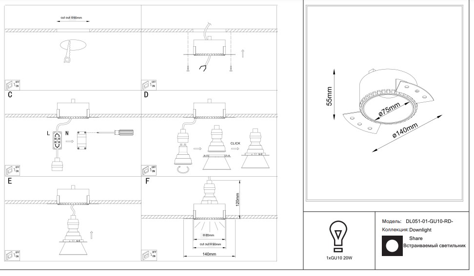 Артикул DL051-01-GU10-RD-WS