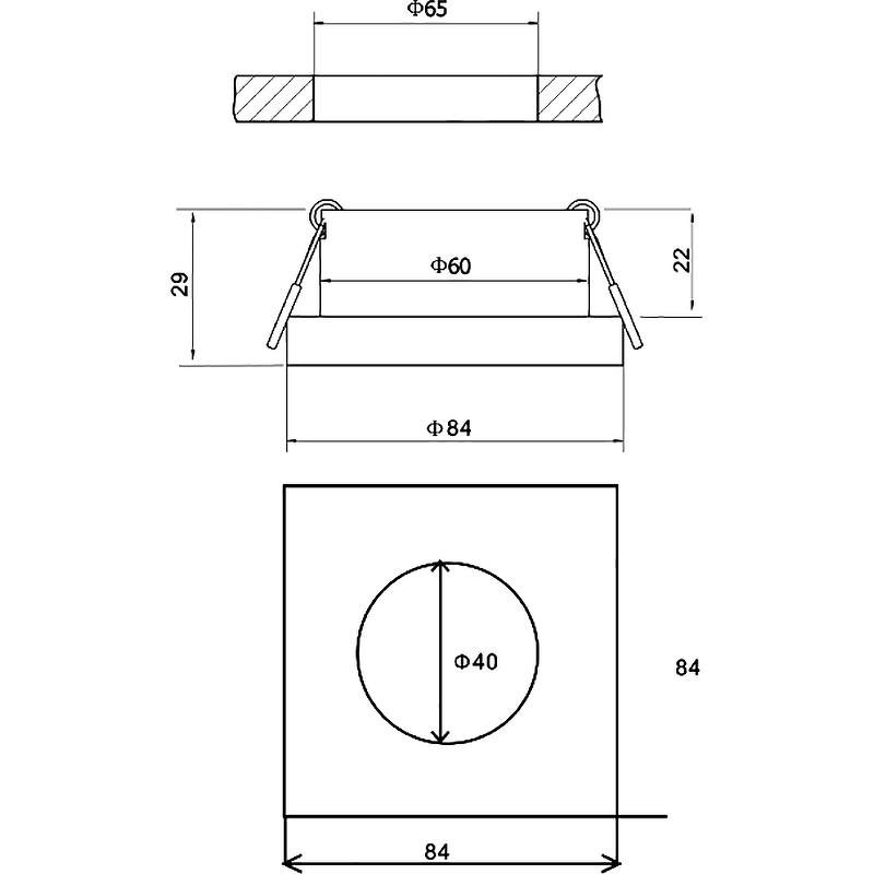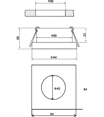 Диаметр врезного отверстия, мм 65