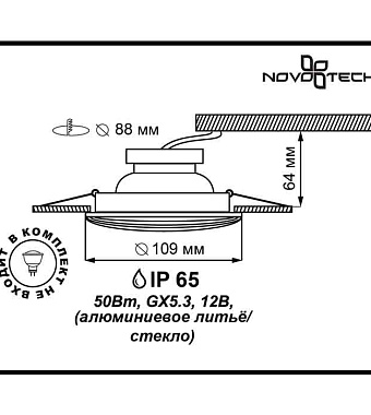 Светильник точечный встраиваемый Novotech AQUA SPOT 50Вт GX5.3 - купить в интернет-магазине Орегон с доставкой в регионы Крыма.