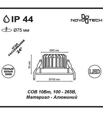 Светильник точечный встраиваемый Novotech SPOT 357602 10Вт LED - купить в интернет-магазине Орегон с доставкой в регионы Крыма.