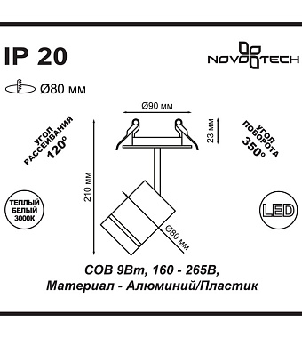 Светильник точечный встраиваемый Novotech SPOT 357689 9Вт LED - купить в интернет-магазине Орегон с доставкой в регионы Крыма.
