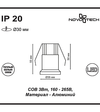 Светильник точечный встраиваемый Novotech SPOT 357698 3Вт LED - купить в интернет-магазине Орегон с доставкой в регионы Крыма.