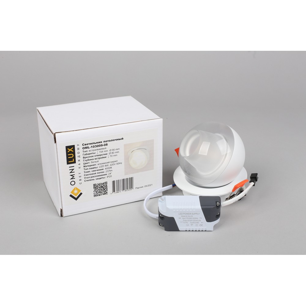 Светильник точечный встраиваемый Omnilux Mantova OML-103009-08 8Вт LED - купить в интернет-магазине Орегон с доставкой в регионы Крыма.