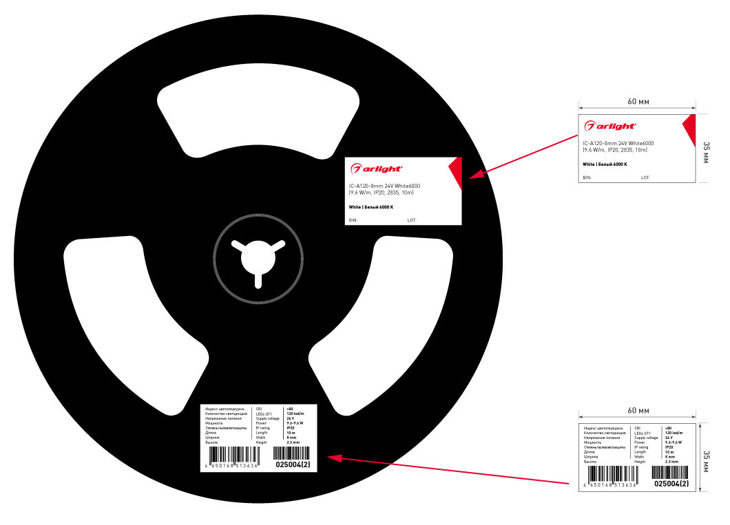 Светодиодная лента Arlight 037961 9,6Вт/м 10000мм IP20 дневной белый свет - купить в интернет-магазине Орегон с доставкой в регионы Крыма.