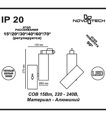 Трековый светильник Novotech PORT 357546 15Вт LED белый для однофазного трека - купить в интернет-магазине Орегон с доставкой в регионы Крыма.