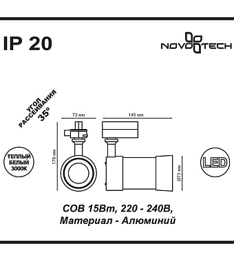 Трековый светильник Novotech PORT 357566 15Вт LED белый для однофазного трека