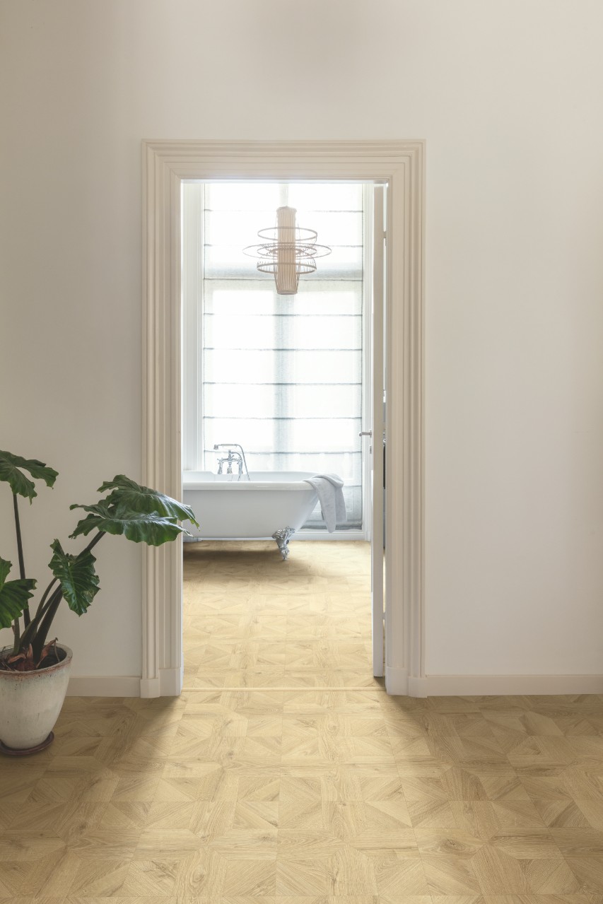 Купить Ламинат Quick-Step Impressive Patterns (33 класс) IPU4142 | Длина - 1200мм, Ширина - 396мм, Толщина - 12мм; | Упаковка по 1.426 кв.м.| Ламинат Quick-Step в цвете бежевый~серый в интернет-магазине Орегон | Доставка по всему Крыму | Оплата онлайн или в магазине