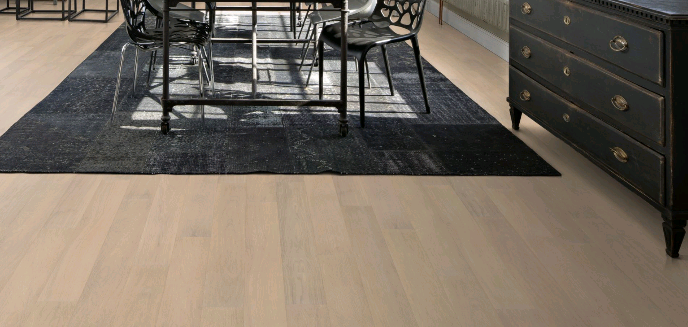 Паркетная доска KARELIA Essence дуб OAK 4 STORY 138 SANDY WHITE 10110648A5253111 1116х138х14мм 1,23кв.м 1-полосная