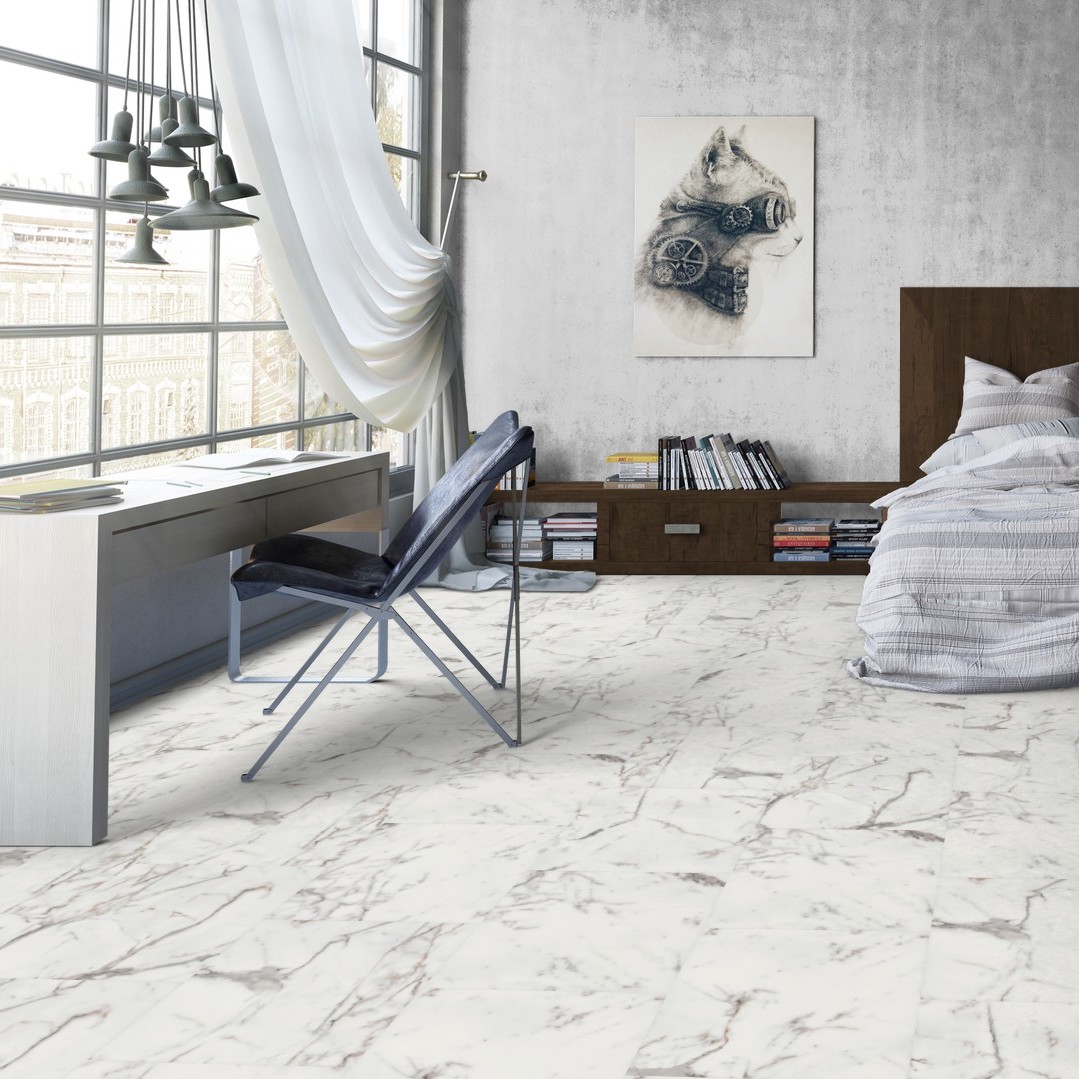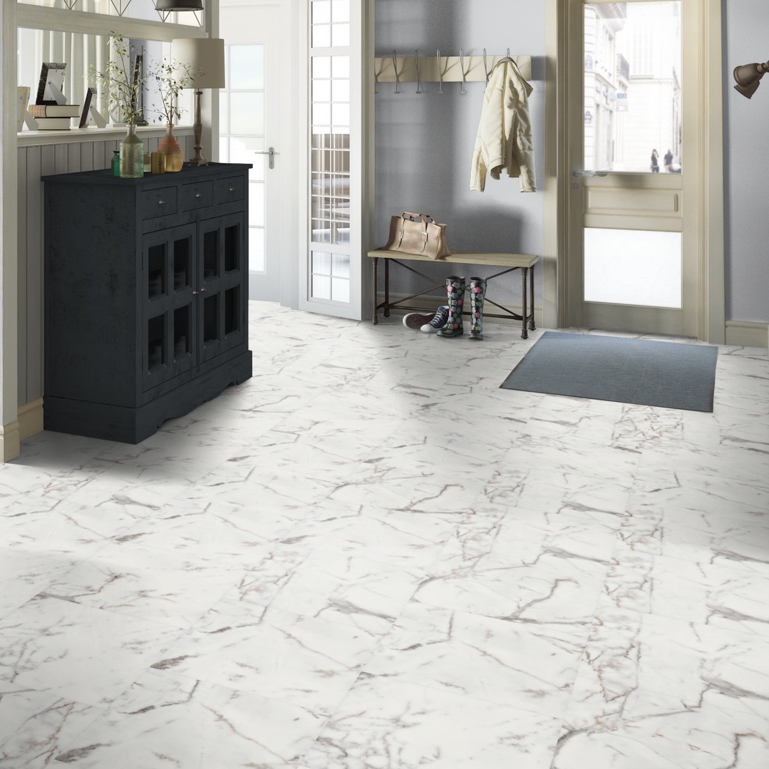 Купить Виниловый пол Tarkett Lounge 230346019 | Длина - 457.2мм, Ширина - 457.2мм, Толщина - 3мм; | Упаковка по 2.09 кв.м.| Виниловый полTarkett в цвете белый~серый в интернет-магазине Орегон | Доставка по всему Крыму | Оплата онлайн или в магазине