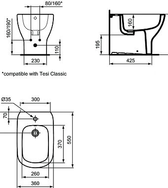 Биде напольное IDEAL STANDARD TESI T3540V3 - купить в интернет-магазине Орегон с доставкой в регионы Крыма.