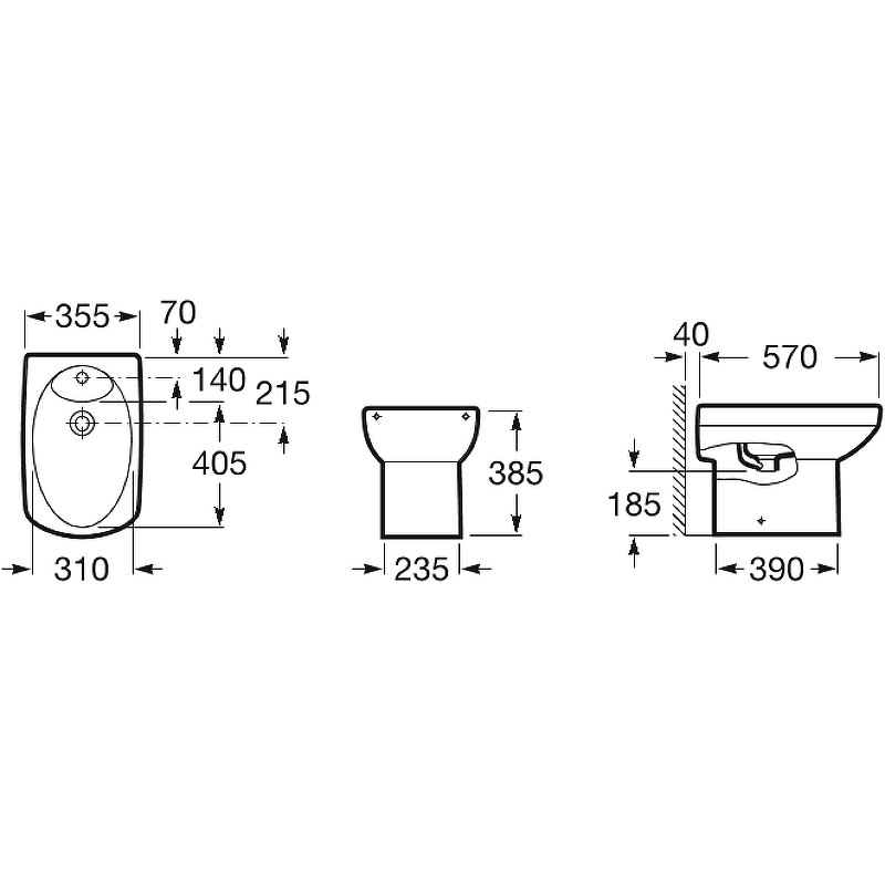Биде напольное ROCA Dama Senso A357514000 - купить в интернет-магазине Орегон с доставкой в регионы Крыма.