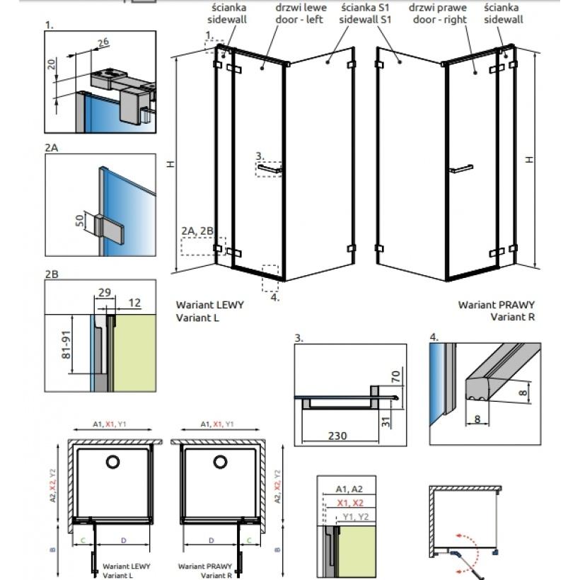 Боковая стенка душевого угла RADAWAY Arta S1 100 200х100см стекло прозрачное