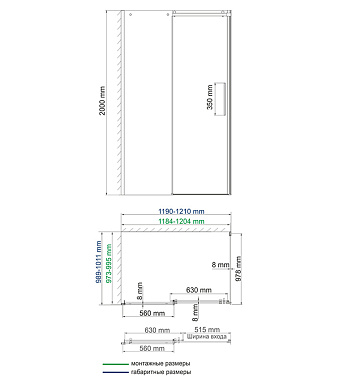 Боковая стенка душевого угла WASSERKRAFT Vils 56R10-RP100 200х100см стекло прозрачное