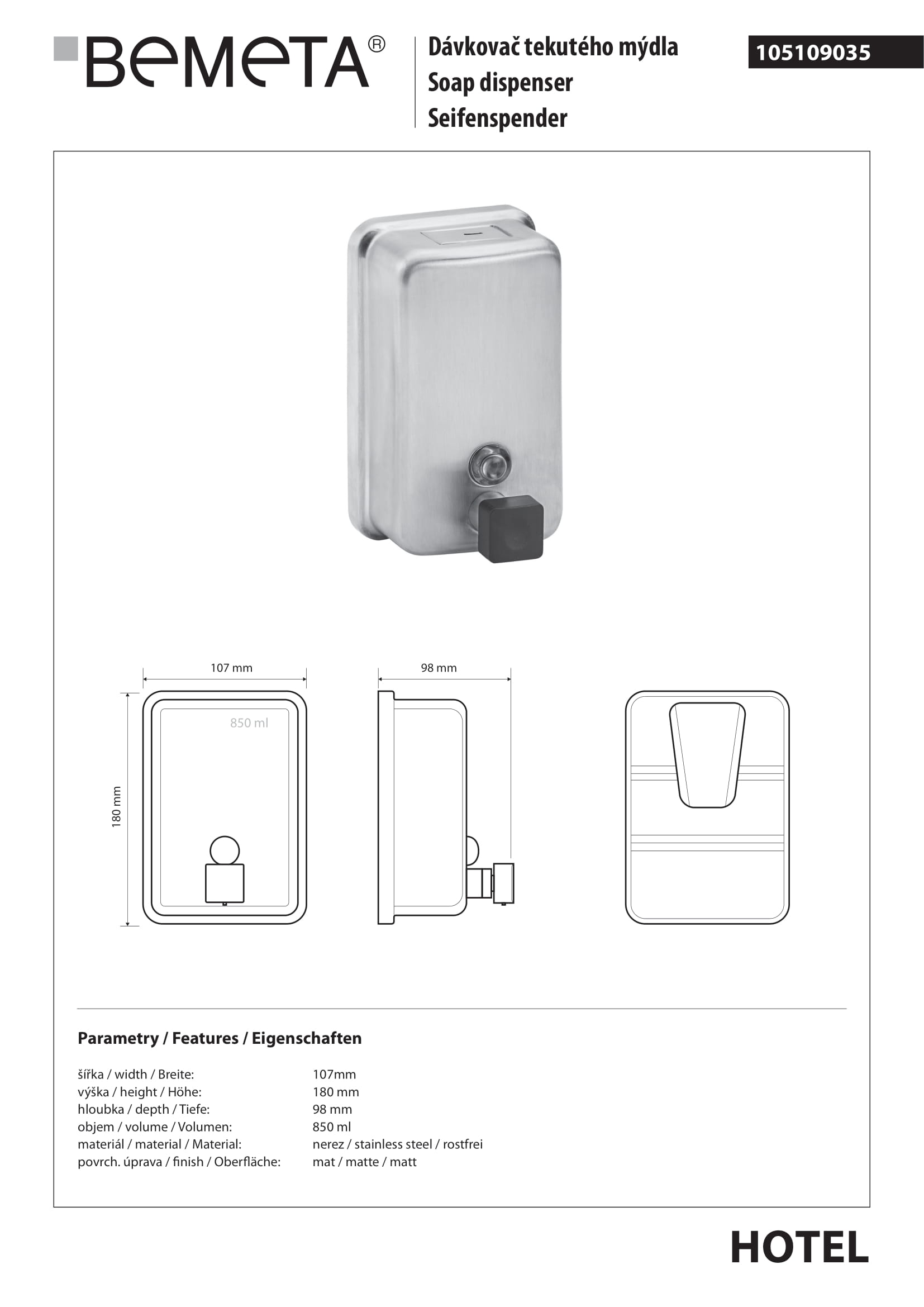 Дозатор BEMETA Hotel 105109035 хром
