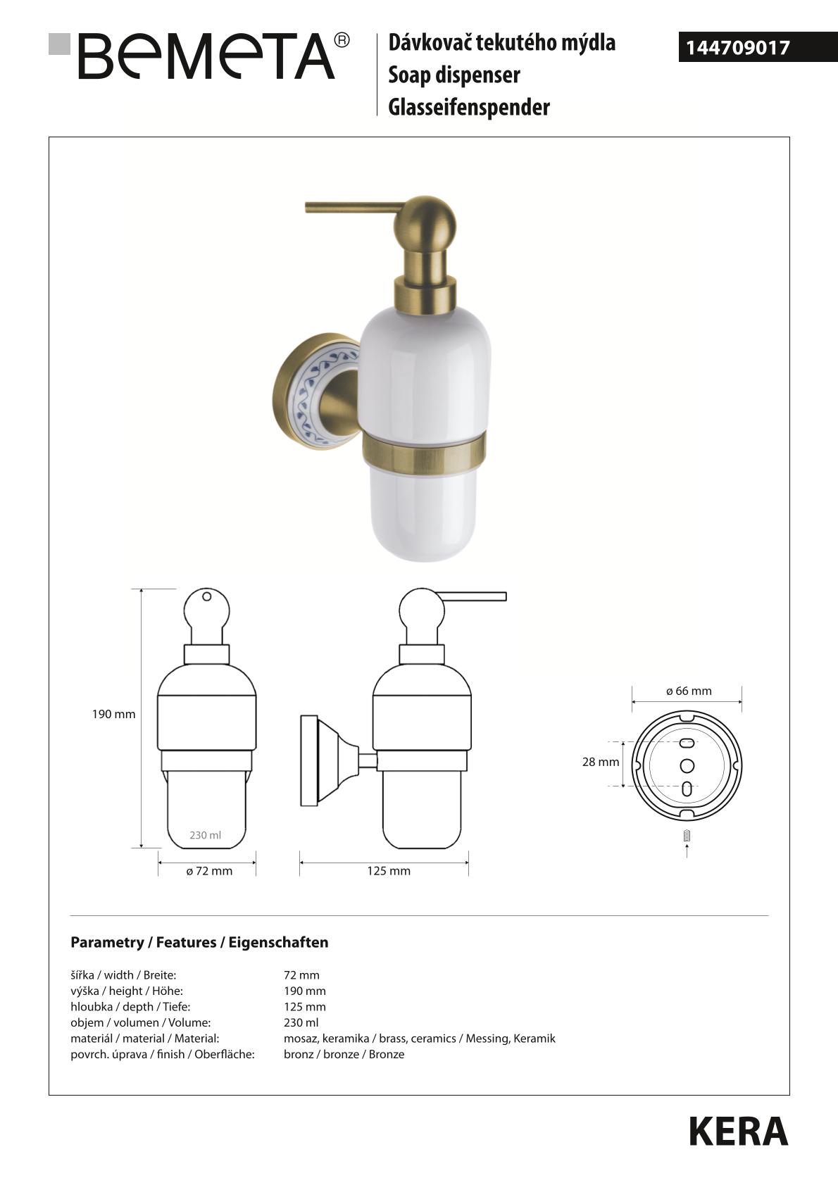 Дозатор BEMETA KERA 144709017 бронза - купить в интернет-магазине Орегон с доставкой в регионы Крыма.