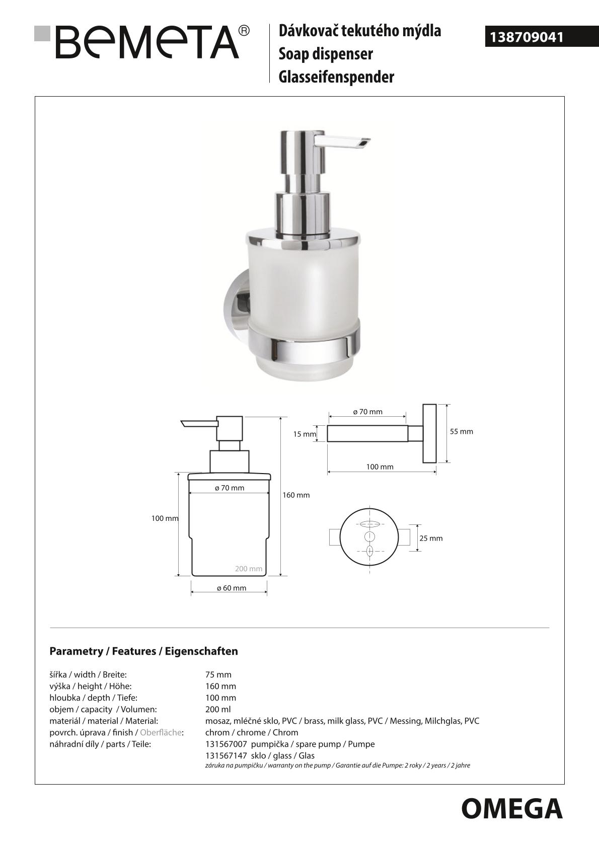 Дозатор BEMETA OMEGA 138709041 хром - купить в интернет-магазине Орегон с доставкой в регионы Крыма.