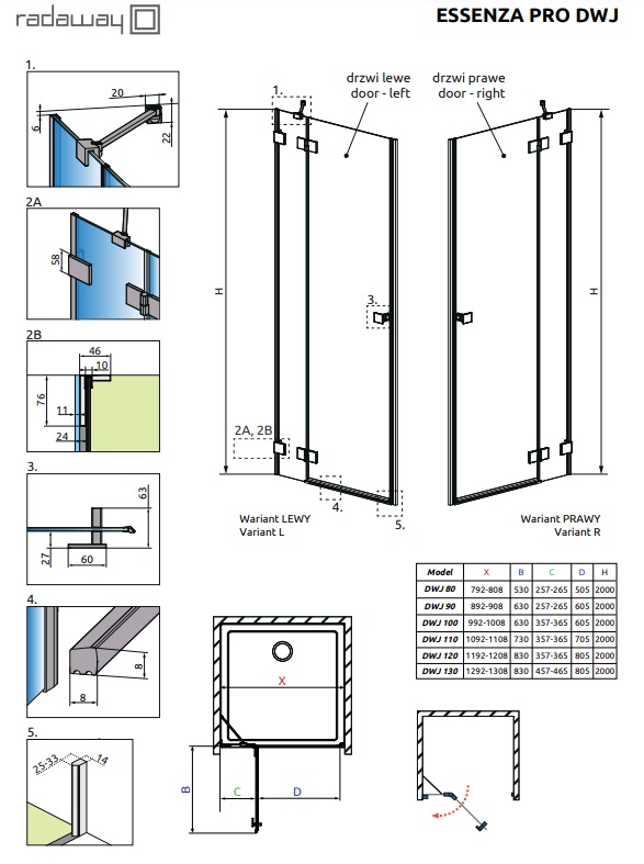 Душевая дверь RADAWAY Essenza Pro 10099100-09-01L 200х100см стекло прозрачное - купить в интернет-магазине Орегон с доставкой в регионы Крыма.