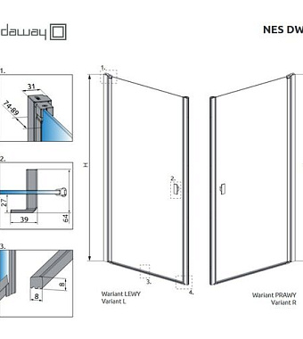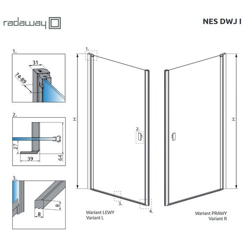 Душевая дверь RADAWAY Nes 10026080-54-01L 200х80см стекло прозрачное - купить в интернет-магазине Орегон с доставкой в регионы Крыма.