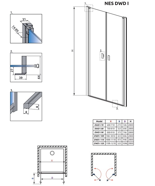 Душевая дверь RADAWAY Nes 10027120-01-01 200х120см стекло прозрачное - купить в интернет-магазине Орегон с доставкой в регионы Крыма.