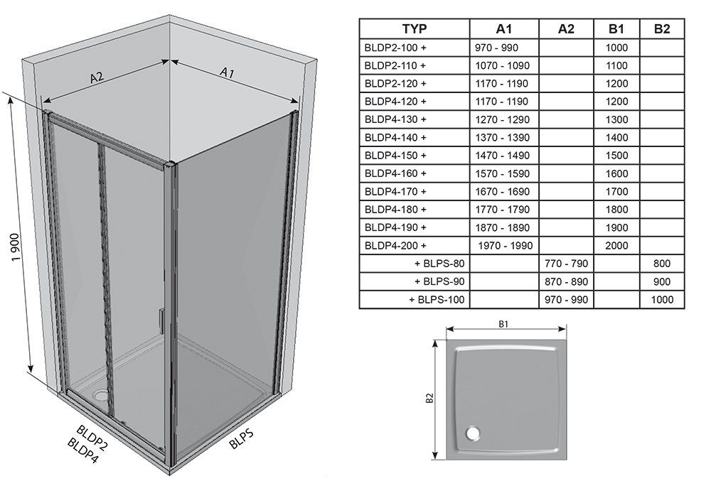 Душевая дверь RAVAK Blix 0PVA0U00Z1 190х100см стекло прозрачное - купить в интернет-магазине Орегон с доставкой в регионы Крыма.