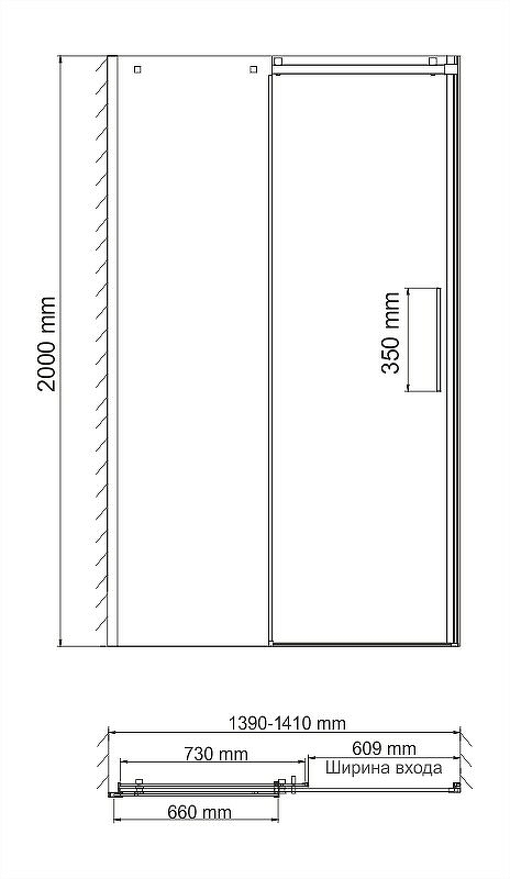 Душевая дверь WASSERKRAFT Alme 15R31 200х140см стекло прозрачное