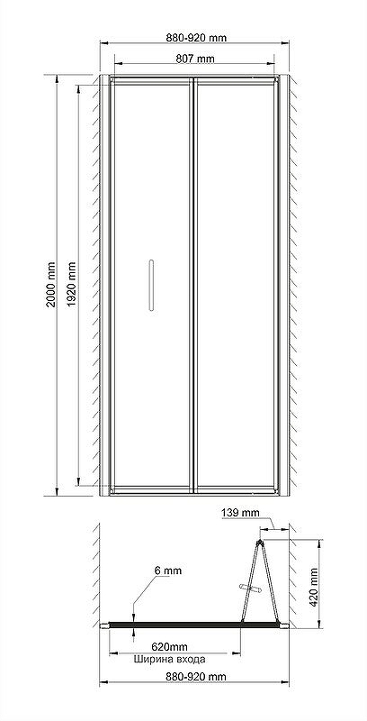 Толщина стекла, мм 6