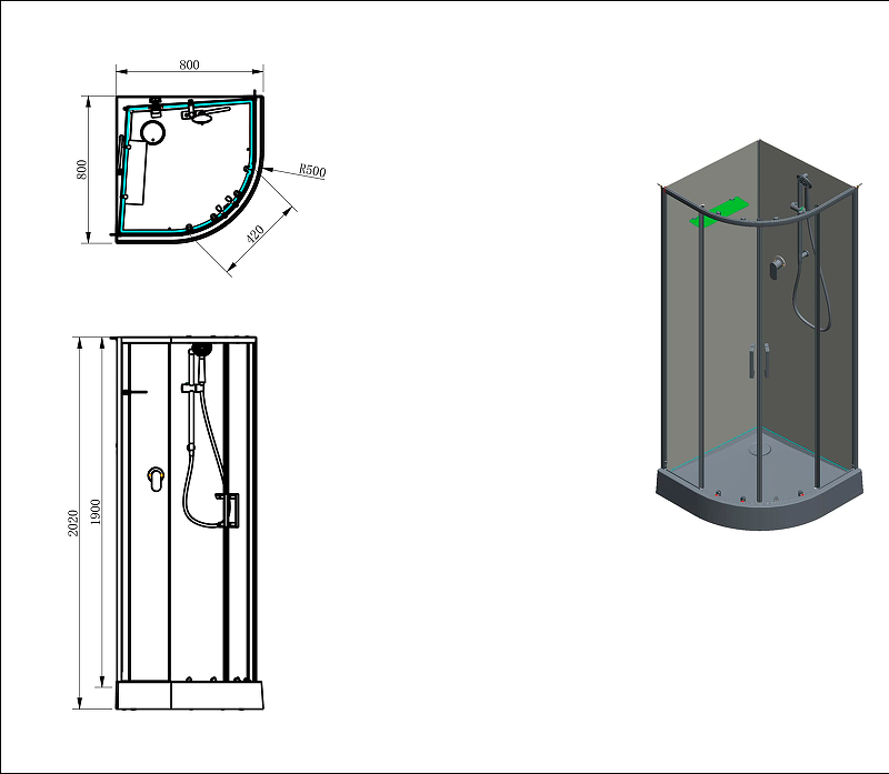 Оснащение (Кабины и боксы) Душевая гарнитура в сборе~Полка