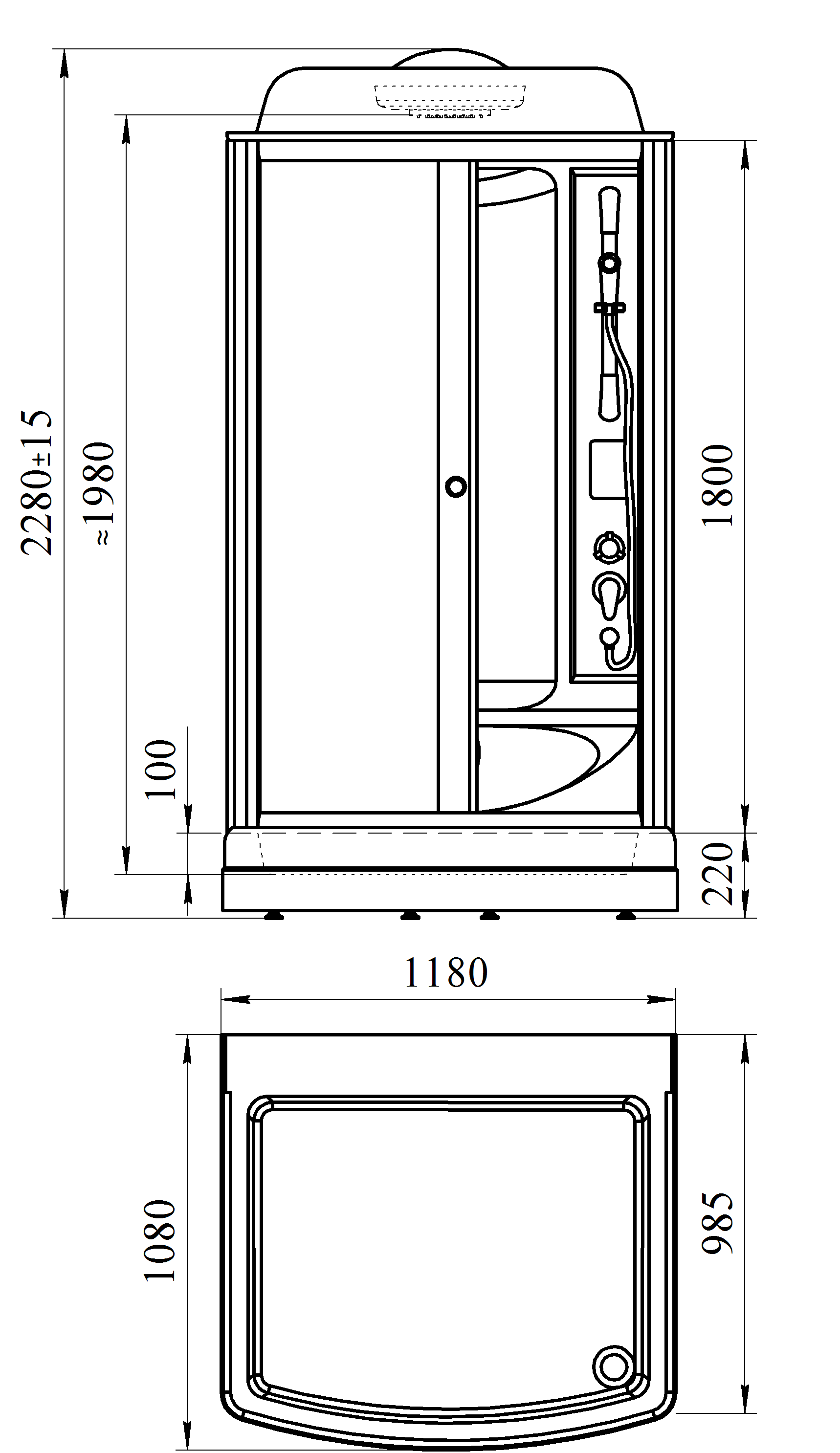 Душевая кабина RADOMIR Диана 1-05-1-0-0-0600 108х118х228см стекло прозрачное