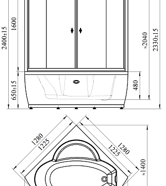 Оснащение (Кабины и боксы) Верхний душ~гидромассаж~парогенератор